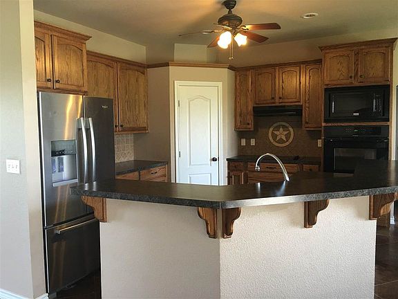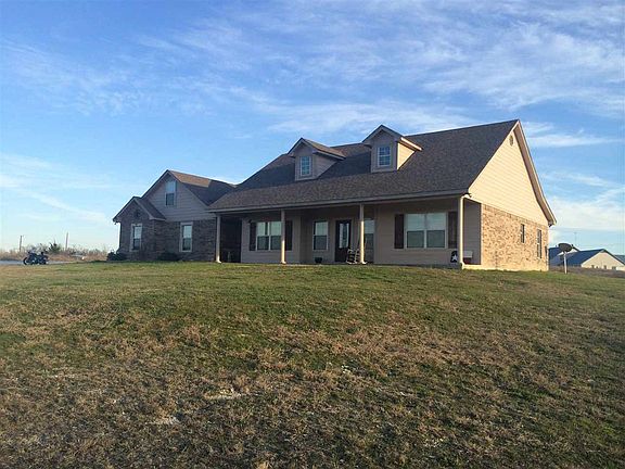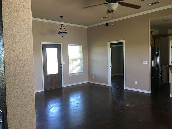 Great country setting in an established subdivision. House sits on corner lot and is lined by trees on one side. Stained concrete floors. open kitchen/living concept, isolated master, with room above garage that could be used at addt'l bedroom, man cave, media room, 2nd living area, or craft room. Three spacious downstairs bedrooms with one smaller bedroom. Enough space to build a barn or fence off for animals. Don't miss out.