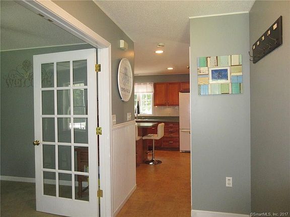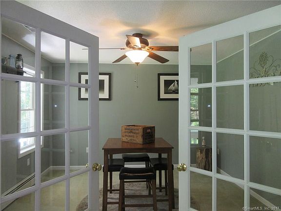 Beautiful Colonial with spacious rooms and nearly 7 acres to roam. Chose your location to relax; on the front porch, sit out on the back deck or gather around the firepit. Front to back living room with new carpet and a pellet stove to keep oil costs down. Formal dining room with french doors. Large kitchen with huge island to gather around. Laundry room on the first floor along with a 1/2 bath across the hall. First floor master bedroom with double closets and a full bath. Upstairs offers 3 bedrooms- 1 with a large walk-in closet, full bath and a walk up attic of over 1000 sq.ft for possible future expansion. Additional sqft in lower level that includes a family room. 2 car garage. Minutes to UCONN.