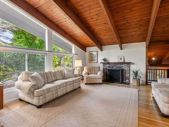 Captivating four-bedroom contemporary home, offering a blend of modern design and cozy warmth. Situated on an oversized lot, this property provides mature plantings, a charming patio, and ample outdoor space. Inside, you'll find an impressive kitchen addition with custom woodwork, vaulted ceilings, and natural light streaming through large windows. The eat-in kitchen features quartz countertops, ample cabinetry, and a perfect view of the lovely back yard. The spacious primary offers a private ensuite bath, creating a peaceful escape. Three additional, well-proportioned bedrooms for family or guests, while two potential home office spaces are perfect for today’s work-from-home lifestyle. Architectural details like exposed beams, vaulted ceilings, and large windows enhance the home’s character, blending modern with a natural palette. The expansive screen porch is perfect for enjoying the outdoors and an unfinished basement provides for future expansion potential. A true gem of a home!