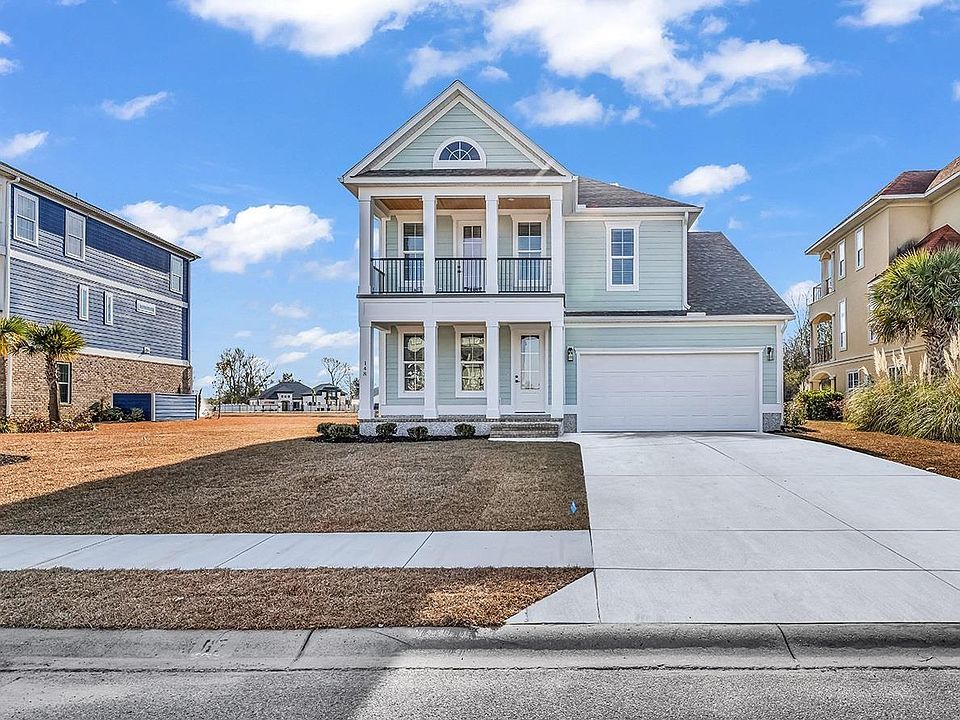 Absolutely stunning brand new custom built home provides a rare opportunity to live in the highly desirable Intracoastal Waterway community Palmetto Harbor. Exquisitely-crafted two story Lowcountry new build boasts an abundance of custom accents including custom cabinets and molding throughout the living and dining area that can also be used as a den or study, kitchen, master suite, laundry, powder room and bathrooms. The spacious family room features a coffered ceiling and custom built and lit bookcases. A gourmet kitchen offers a large island with beautiful oak wood façade and matching range hood, large breakfast nook, solid countertops and pendant lighting, as well as a spacious pantry and stainless steel appliances including wall microwave and oven, refrigerator and dishwasher. Both rooms open out to a covered porch overlooking a large backyard situated directly on a private neighborhood pond. A first floor master bedroom suite features a custom wood accent wall, a master bath with beautiful tile, double vanity, double shower and free standing bathtub and large walk-in custom master closet. The second floor features a second story covered porch with custom tongue and groove pine ceiling. An abundance of space features three large bedrooms, all with walk-in closets for ample storage, a Jack and Jill bathroom with double vanity, along with another full bath. The home's beautiful curb appeal features a hardy plank exterior and professional landscaping and irrigation system. Palmetto Harbor's beautiful setting along with Intracoastal Waterway offers a low HOA and is conveniently located in the heart of North Myrtle Beach with an easy golf cart ride to the beach, as well as shopping, dining and service businesses.