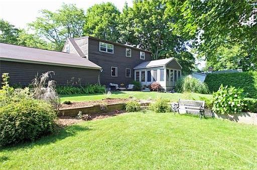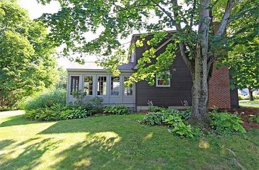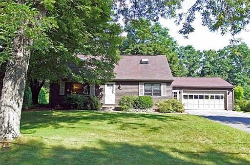 Easy to show and ready to go! Move-in ready dormered cape with a great, open floor plan and hardwood floors throughout. Spacious L-shaped living room with fireplace flows into gracious 3-season room with cathedral ceilings and glass and screen inserts. Kitchen is great for entertaining and features tile floors and backsplash, breakfast bar, and island and is open to large dining room. Totally updated first floor full bath features tile floors and marble sink. Upstairs is a front-to-back master suite with walk-in closet and updated bath, plus 2 more bedrooms. Partially finished lower level has room for playroom, home office, and workout space, plus 2-car garage, 200 amp electrical service, and house stained and new roof on dormer in 2013. Nestled on private and peaceful .3 acre lot with perennials, patio, and a Goshen stone pond. Great location-- 5 minutes to 91, 12 mins to downtown Northampton, and 20 to Amherst center!