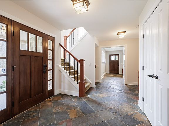 Experience the charm of this beautiful Arts and Crafts-style home on a private wooded lot, with ample sunlight. As you enter, you'll be welcomed by the main floor adorned with abundant built-ins, including bookcases, workspaces, and cabinets. The kitchen has built-in refrigerator, 36" dual fuel GE range, wall oven, microwave, and a stunning coffee/cocktail bar, all meticulously crafted to perfection. Offering more functional space, it features numerous bonuses, including a 524 sf bonus space off the second floor, a fully finished 423 sf room and bathroom in the lower level with walkout access and egress, and an additional 442 sf lower level flex room suitable for a gym, dance studio, or crafts area. With a total living area of 4,363 sf, this home exceeds expectations. The property also includes a killer detached three-bay garage of 1,700 sf, complete with 10' overhead doors, full insulation, heating, hot water, and a bathroom. Both the home and garage are wired for sound, indoors and out. If you're ready to elevate your lifestyle, this property offers it all! Showings begin 9:00 am Thursday March 28 and delayed negotiations until Wednesday April 3 at 12 noon.