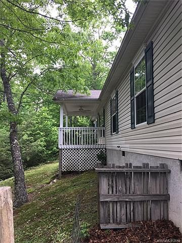 Very private 2001 On Frame Modular home on .9 acres. Room for a small garden, 2 carport covered, storage/work shed are on the property. No close neighbors located at the end of the road. Home has 2 Bedrooms and an office, very open floor plan, fireplace in Den, 2 full baths with a garden tub in one. Home is located in Balsam Grove behind the McCall Grocery. If you love to fish you are only moments away from the creek to enjoy all the fishing you want. You are about 30 - 35 minutes from downtown Brevard.