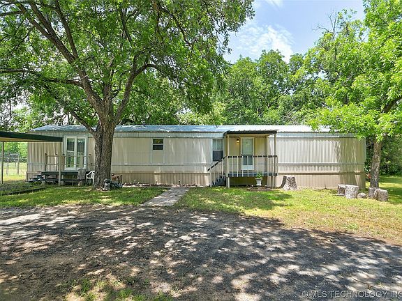 Follow the private, winding treed road to this secluded mobile home on 2.46 acres in Lone Grove, OK.