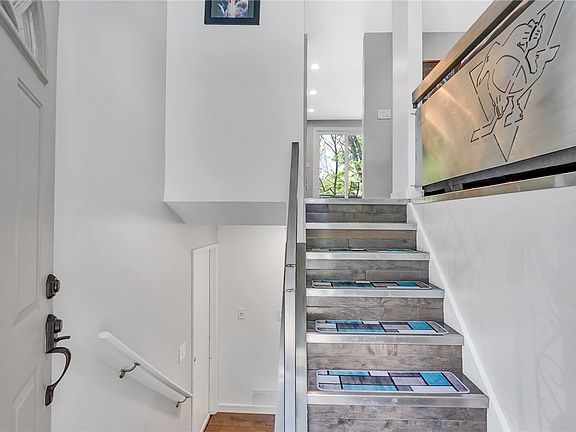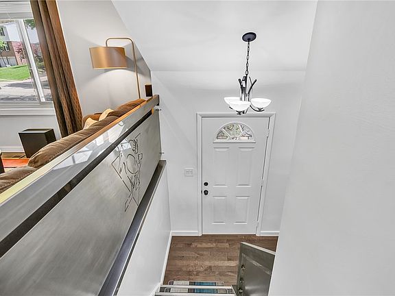 WELCOME HOME to this renovated and modern split entry with beautiful landscaping in Monroeville! Show-stopping kitchen with island seating for two, white cabinets with soft close drawers, subway tile backsplash, and stainless appliances, including new Bosch dishwasher. Gleaming hardwood throughout the main level, except the bedrooms which are carpeted. Kitchen opens to a deck overlooking woods. Master bedroom has built-in closet storage, wall mount for TV, and ensuite bath with shower. Bedrooms include built-in closet and oak shelving. Hall bath is modern and features a tub with tile. The game room is well-lit by windows and sliding door to the patio, which is the perfect place to relax. Gas fireplace and partial bath in lower level. Lots of space in this 2-car garage for all your projects. Wired with Cat-6 and smart thermostat. Conveniently located close to groceries, Haymaker Pool, a park, and dining! 2021 A/C.