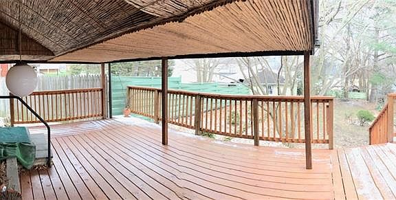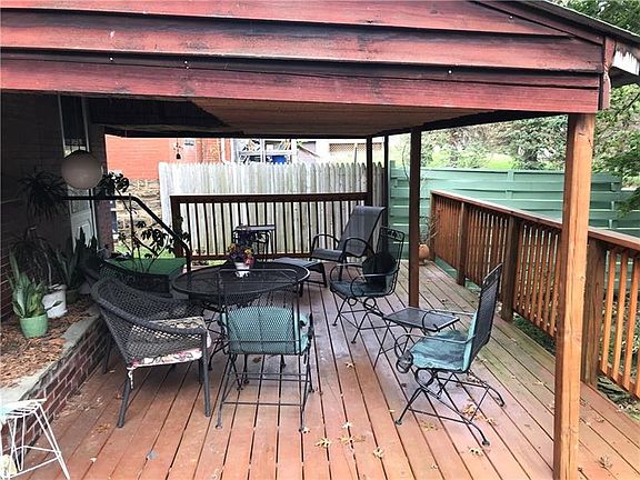 Spacious 3 story brick, 3 bedroom with 2 additional unfinished bedrooms on 3rd floor, open floor plan with family room, living room and dining room, hardwood floors and gas fireplace. Large eat-in-kitchen with plenty of cabinets, new 14x28 covered deck with bamboo ceiling, beautiful covered front porch, large basement with additional rooms. Situated on quiet brick street and conveniently located to W&J College, shopping and interstates. One car shared garage. Many updates needed.