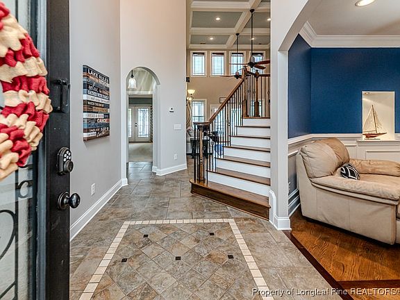 Don't miss this custom waterfront home in Carolina Lakes w/tons of water frontage on the main lake that incl. a wide boat dock, jet ski slip, new Trex dock & private beach. The open floor plan, 4 bdrms, 4 full baths & bonus room make this home perfect for entertaining & family. Enjoy a gourmet kitchen w/custom cabinets, granite countertops & gas cooktop. The foyer opens up to a 2-story great room w/coffered ceilings, dbl-sided gas FP, formal DR/office, triple trey ceilings in master bdrm w/dbl doors opening to the deck facing the lake, master bath w/WI shower w/dbl shower heads & dbl split vanities, back porch facing the lake spanning entire width of the house to enjoy the evening sunsets. Add'l features of the home inc. a security system, pet shower & surround sound system in the LR. Enjoy the best of both worlds by living in a luxurious waterfront home surrounded by nature. 3600 total SF-bonus is 324 SF of an unpermitted addition that otherwise meets the definition of living area.