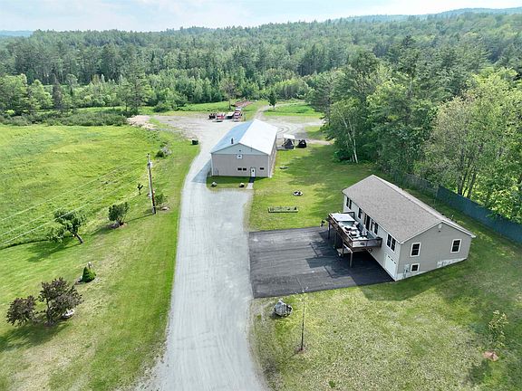 With the Wells River running along the eastern border, this property has all of Groton's natural beauty surrounding it as well as a comfortable amount of privacy. This Ranch-style home has three bedrooms, two full bathrooms, and plenty of entertainment or hanging space. The front deck is outfitted with furniture to enjoy the sun, and the hot tub on the side deck is ready for relaxation. The kitchen features granite countertops and a large center island, great for quick meals or setting up charcuterie for company. A dine-in kitchen space currently functions as the formal dining area. The downstairs has been used as an office for a functioning business as well as storage rooms, but the potential for the lower level is endless. The walk-out basement leads to a paved driveway, and the attached single car garage gives easy access for daily drivers or weekend cruisers. The detached 4000 square foot garage structure has been used for business. It could be used for personal endeavors, or the usage could continue as it has been. Everything is ready to go, office space, storage space, and a functional restroom for the garage structure give this a separate identity from the dwelling. Whether you're looking to live, play, and work all in the same lot, or if you have a desire to store and work on large pieces of equipment, this property has what you need to do so. See how your vision applies to this unique property.