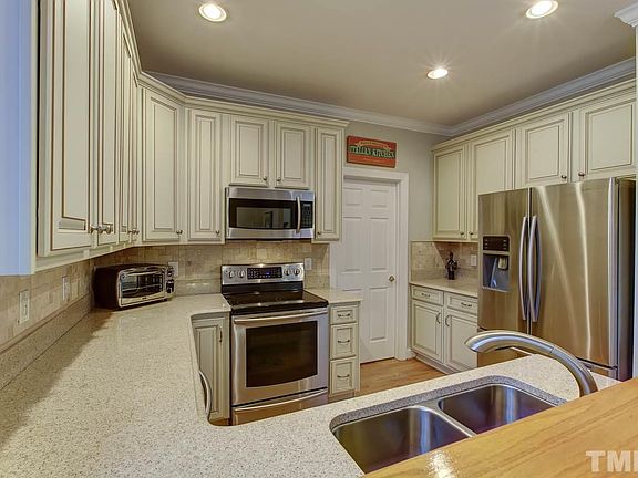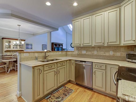 Stunning, all brick townhome with light/bright, open floor plan! Gleaming hardwood floors. Stylish plantation shutters. Updated kitchen with gorgeous quartz counter tops and SS appliances. Tray ceiling and crown molding in formal dining area. Vaulted family room with double skylights and fireplace. Cathedral ceiling in opulent, 1st floor master plus renovated bath with walk-in tub and separate shower. Open, upstairs loft leads to office/flex room and 2 more bedrooms. Relaxing back deck. A Must See Home! Contact Eric DeRosa at 919-417-5866
