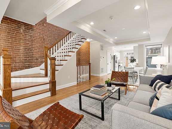 Elegant Eckington Residence! This stunning circa 1907 rowhome has been meticulously updated for modern living. Step into the spacious 2,400 sq ft home and be greeted by the timeless beauty of solid hardwood oak floors that flow throughout the first and second levels. The exposed brick adds rustic charm, while the elegant crown molding highlights the ceiling details. The large living room seamlessly transitions to the dining room, offering plenty of space for a table for eight. The adjacent kitchen has been thoughtfully updated, showcasing timeless white Shaker cabinets, a classic subway tiled backsplash, undercabinet lighting, stainless steel appliances and more. French doors lead to the fully fenced backyard, providing space for outdoor living or parking. For EV drivers, a Tesla charger has already been installed, and a commercial-grade roll-up garage door offers extra security. Upstairs, the sun-filled south-facing primary suite boasts soaring ceilings, a walk-in closet, and a spacious en suite bath. Two additional bedrooms and another full bath offer the perfect space for guests and/or a home office. The fully-finished lower level of the home adds extra versatility. The rec room could easily double as a fourth bedroom or in-law suite, with a door at the bottom of the stairs for privacy. There is a kitchenette for extended-stay guests, plus a third full bathroom. Separate front and rear entrances make basement access easy. The property is conveniently located with easy access to neighborhood favorites like the Pub & the People, Big Bear Cafe, Lost Generation Brewing, and more. Head south to the NoMa Metro or over to Union Market to pick up necessities at Trader Joe's or enjoy loads of restaurants and boutiques. Embrace the best of city living at 148 R Street NE, where classic elegance meets modern comfort. Note: Seller has an assumable loan at 2.25% interest. Offers kindly requested by April 2nd.