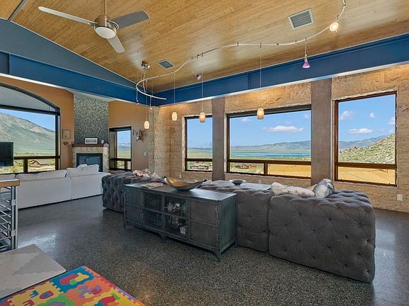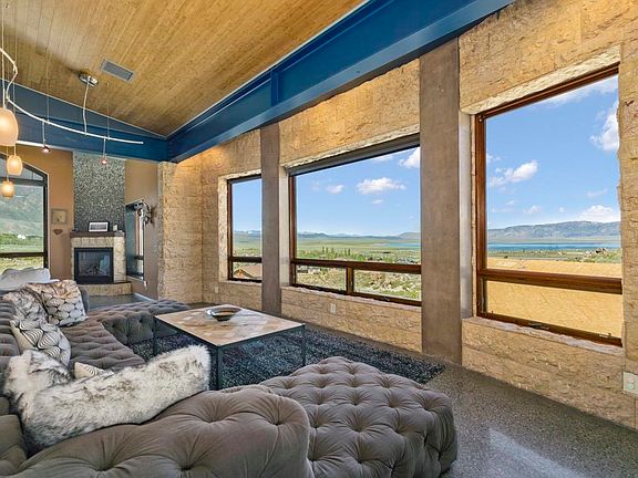 Contemporary hillside residence with views dramatic views of Long Valley Crowley Lake. Just 15 minutes south of Mammoth Lakes in the quiet, rural community of Crowley Lake where wide open spaces are right outside your door. This 4-bedroom, 3.5-bathroom home is designed for elegant living and entertaining with a modern edge. ICF construction boasts structural and energy benefits. Architectural concrete elements inside and out, slab granite stairs, gourmet kitchen, huge garage with storage lofts, 6-zone hydronic heat, and this is one of the very few homes in the area that has AC. If you’re looking for a work-from-home environment; you’ll enjoy the 1GB high speed, fiberoptic internet service providing ample speed to easily accommodate multiple users plus gaming, phone & internet TV. Recent upgrades include a new boiler for the hydronic heat and domestic hot water, a whole home water filtration system, completely remodeled primary bathroom, landscaped yard with paver patios and terracing.