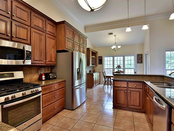 Executive home in popular West Lee County's Callaway Lakes designed for low maintenance in mind. This lovely brick home with vinyl trimmed soffits has 4 Bedrooms, 3 Baths, and Bonus room with approximately 3,300 square foot of usable space. Walk into this home and you will find the move-in ready features of refinished "real" hardwood flooring, New carpet, and freshly painted ceilings and walls. The kitchen is very spacious and opens to the Great Room. The kitchen is a cooks dream with the gas stove top, abundant Cherry stained cabinets, granite counter tops, tile back splash, and stainless appliances. The master bedroom is very spacious and private. This split bedroom floor plan is very appealing for most families. Upstairs the family can enjoy the bonus room with a separate area for an office/craft room. Other features of this home include: 1) white marble vanity tops in MBR 2) walk-in his and her closets in MBR 3) Whirlpool tub trimmed in ceramic tile 4) tiled shower with bench in MBR 5) sprinkler system 6) 12ft ceilings, 7)two piece crown molding 8)gas fireplace with brick hearth 9) 2.32 acre lot 10) triple car garage 11)breakfast area with bulters bar and built-in wine rack serving area 12)plantation blinds 13) large laundry room with sink 14)ceiling fans 15)carpet in bedrooms 16)tray ceiling in MBR 17) 16" ceramic tile floor in kitchen 18)alarm system 19)and much more! Call for an appointment today to see this outstanding home in convenient Callaway Lakes Subdivision.