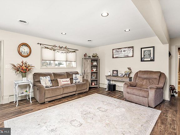 Wonderful opportunity to own this lovely ranch in desirable Hillside Terrace! Meticulously maintained beginning with concrete poured oversized driveway, manicured lawn and decorative stone front. Welcome inside to gleaming newly refinished hardwood flooring, living room has been expanded to expose fireplace and sliding glass doors; utilize this extra space as a reading area or could double as a dining room. Enjoy low utility bills with the fireplace wood burning insert; literally heats the entire house! Two equal in size large bedrooms are flanked by a renovated full bath with jacuzzi tub, designer tiles and radiant heat flooring. The kitchen is a pleasure with windows overlooking the serene backyard. Kitchen is outfitted with upgraded granite, refinished cabinetry and stainless steel appliances. Immediately off the kitchen is the formal dining room, however this room could easily transition to an additional family room or home office. Rounding out this level is renovated powder room, sunporch and access to an oversized two car garage. The basement is already outfitted with zoned baseboard heat, new hot water heater, bilco doors, crawl spaces for storage and much opportunity to finish this space for additional recreation area. Newer Techno Block patio expands the back of the house with a built-in fire pit to enjoy the private and preservation protected wooded tree line. Special features include recessed lighting, ceiling fans and full attic house fan. Fantastic location, close to I-195, NJ Turnpike, Route 130 and shopping. Turn-key; all you have to do is unpack! See this today.