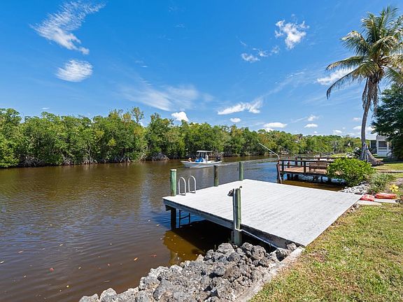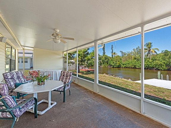 This RARELY available LOCATION in Riverwood Estates on Henderson Creek is now for sale. Enjoy carefree living on the creek with your very own private dock behind your home. Do you like to fish? This is the location for you. In 2007 the carport was installed to enhance the circular driveway. This manufactured home offers two bedrooms, two bathrooms, and a laundry area. In 1989 an Air-conditioned porch was added to increase living space. Use as a third sleeping area or redesign for another larger living area. In 2007 the screened lanai was added, and it has a storage room. The lanai is steps away from the dock, where you will enjoy your waterfront views and fishing. Enjoy all the boat activity and wildlife on the creek. Riverwood is a small, active 55+ community with boat launch area. This is the home you have been looking for that offers affordable waterfront living in Naples. Homeownerâs Association dues are ONLY $190.00 a year. You own the land.