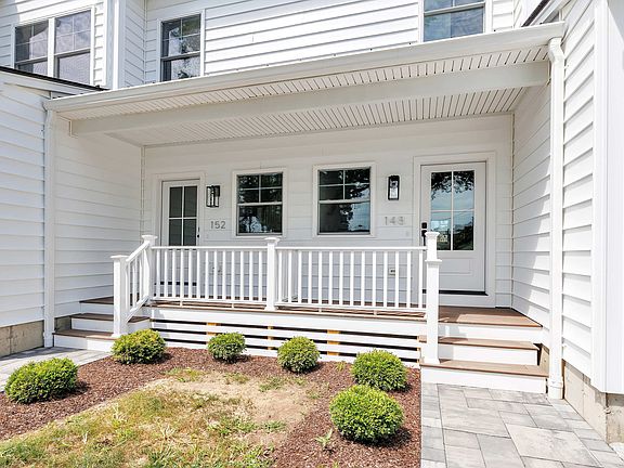 Sophisticated style and modern luxury meet at 148 Roseville Street, a newly constructed duplex designed for today's modern buyer. A beautifully landscaped walkway and welcoming front porch introduce an interior defined by natural light, open spaces, and refined finishes. The sun-filled main level showcases an open-concept design with glistening oak floors and seamless flow between the family room, dining area, and chef-inspired kitchen. A striking electric fireplace anchors the spacious family room, while the kitchen impresses with its oversized island for four or more, custom tile backsplash, premium stainless steel appliances, and sophisticated details throughout. Glass sliders extend the living space outdoors to a serene backyard, ideal for both relaxed evenings and effortless entertaining. A powder room, access to the two-car garage, and lower-level entry complete the first floor. Upstairs, four generously sized bedrooms offer exceptional closet space, alongside a convenient laundry area and two full bathrooms. The primary suite is a true sanctuary, featuring a walk-in closet and spa-like bathroom with a soaking tub, dual vanity, and expansive walk-in shower-designed for indulgence and relaxation. The partially finished lower level provides versatile bonus space, perfect for a home office, playroom, or media room. Perfectly positioned, this home is walking distance to local shops and restaurants, minutes to train, schools, parks, highways, luxury meet prime location!