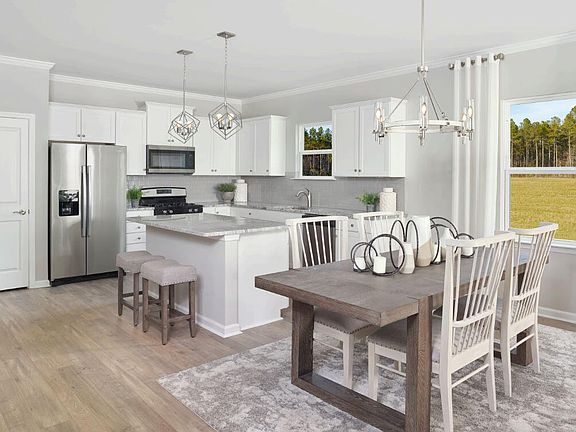 Discover the perfect blend of affordability and quality in this beautifully designed single-level home. Featuring an open floor concept that maximizes space and natural light, creating a warm and inviting place for family gatherings or entertaining friends. Thoughtfully chosen finishes include the Coastal Sage Board and Batten Exterior, Premier Fresh Interior Package which included Quartz Countertops and White Cabinets, Luxury Vinyl Plank flooring in common areas. 9 Ft. Smooth Ceilings, Stainless-Steel Appliances, and Smart Home Features include a Ring Camera and Honeywell Thermostat. Irrigation, Gutters and Covered Lanai. Wooded homesite. Cedar Glen Preserve is minutes from local amenities, parks and schools. Cainhoy - your gateway to the best of Lowcounty Living! Visit Today!