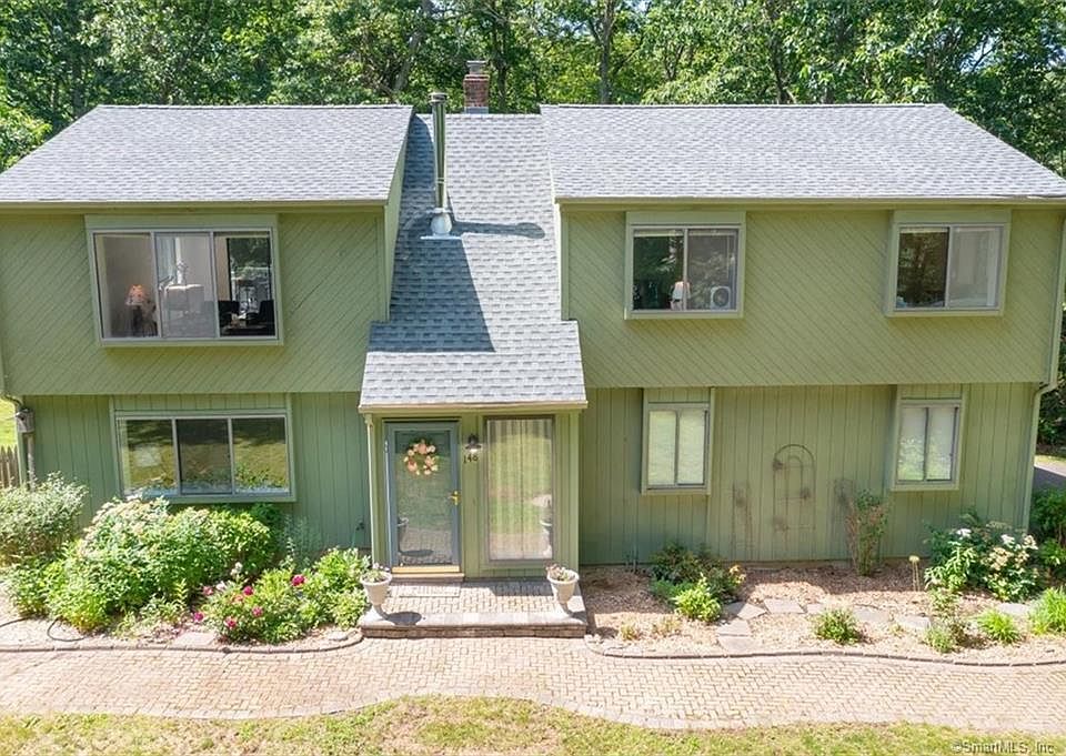 Nestled in a country setting, on 3.19 acres, set back on an interior lot, this light-filled contemporary home offers 3/4 bedrooms and 2 full and 1 half baths. Paver walkway leads guests to a front entry foyer with access to a two-car garage to the right and a home office or study to the right with a bedroom and half bath/laundry room, perfect for those working or studying remotely or a private area for overnight visitors. A wood-burning stove in the foyer provides added warmth during colder months. Stepping upstairs to the living room which flows easily to the dining room and into the kitchen, large boxed windows allow natural light to bathe the interior spaces and a glass slider opens to a large deck overlooking the private backyard setting. The kitchen provides an island w/additional seating and a butcher block top, recessed lighting, pantry and an oven with gas cook-top. Three bedrooms, and two full baths round out this floor. Enjoy gatherings with family and friends in your own peaceful and personal retreat, summertime BBQs on the expansive deck, sitting by the large fire-pit, or simply relax and relish the tranquility this property offers. Conveniently located, less than a 10-minute drive to the center of town, beach, lake, shopping, and major commuter routes.