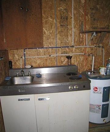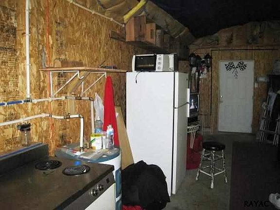 Car lovers will delight in this 30x30 detached garage w/overhead garage door. Feat. 10' ceilings & security system. A section of the garage was partitioned off with full bath and apartment size kitchen w/refrig. Insulated walls, new stockage fence, new water & sewer lines, new sidewalk, additional parking for 4 cars. 2 zone gas heat! Rent to own possible