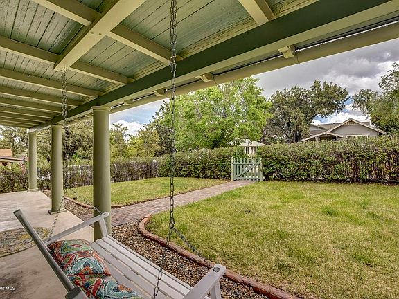 Nostalgic and charming downtown bungalow on the historic registry! Set on one of the finest Historic streets in Prescott which offer views and privacy and is just a moments' walk to downtown with a street that dead ends to Acker Park. Original hardwood floors, wood windows and dramatically high ceilings along with a Living room that offers a fireplace and spacious sitting area. The previous screened room was completed with windows and heat (not included in square footage). This large corner lot contains a small one car garage / workshop, carport with large detached 2 car garage, space for an R/V and plenty of yard still left for the family!