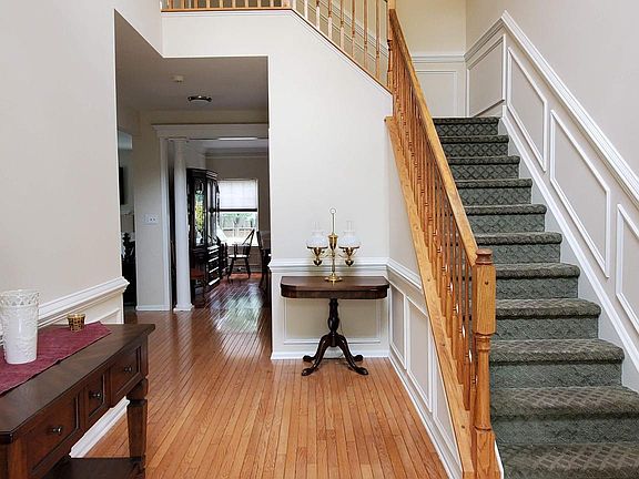 Don't hesitate to view this 4 bedroom, 2.5 Bath home situated on a .55 acre lot! Two-story foyer with hardwood floors and shadow box wainscoting. Spacious office with french doors. Freshly painted interior. Great room with wall-to-wall carpeting, gas fireplace with marble hearth and mantle. Dining room with newer Brazilian hardwood floors, chair rail, shadow box wainscoting, and crown molding. Spacious island kitchen with honed granite countertops, 42" cabinets, and stainless steel appliances. Powder room with ceramic tile floor and custom vanity. Primary Bedroom with cathedral ceiling, two walk-in closets. Primary bathroom with vanity and two sinks, garden tub, and stall shower. Three additional bedrooms with ample closet space. Updated hall bathroom with ceramic tile flooring, vanity with two sinks and marble top, tub with ceramic tile surround and glass tile accent niche'. Finished basement with TV room, recessed lights, wall-to-wall carpeting, game room with built-in speakers, and large storage room. Huge fenced backyard with large patio and gas line hook-up for grill.
