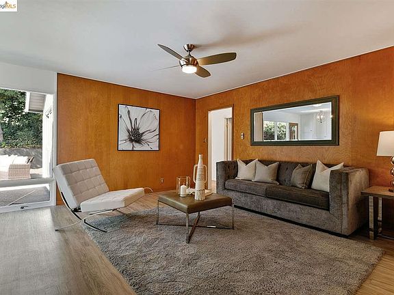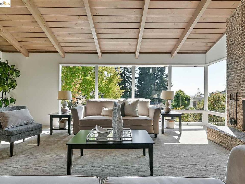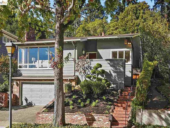Piedmont Mid-Century Modern built in 1955 boasts dramatic ceilings, a grand formal living room, a separate dining room with hardwood floors, 4 bedrooms, two full baths plus a kitchen family room, with a level garden. Home to top-rated schools, K-12. Convenient to the Montclair Village shops and boutiques, cafes and restaurants and within close proximity to public transportation and highways.