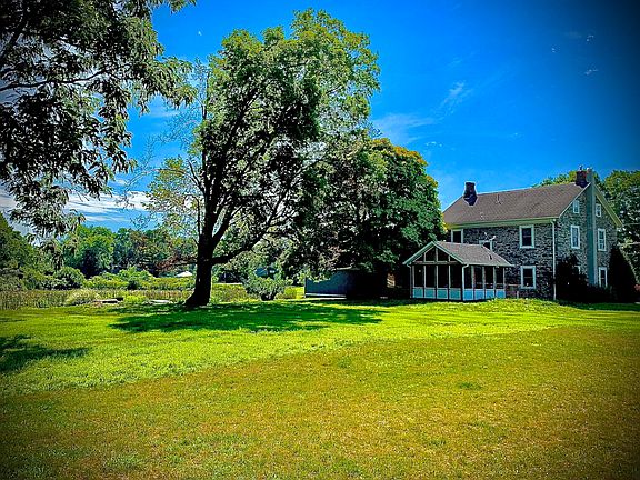 Welcome Home to Your 1807 Stone Built Country Home on 4.7 acres with Pond and Creek . Fully Renovated accenting the History and Character of the times , yet delivering the comfort of all the Modern amenities . Spacious Living room with Oak floors, Stone Fireplace ,and French doors. Open concept Formal Dining area with Oak floors . Eat in kitchen with 3 stool breakfast bar , Massive stone hearth, and Dutch door .3rd floor Master suite with variable width Pine floors , Full en suite Bath and Cedar walk in closet. This outstanding home is equipped with a Unico Central Air System,Central Vacuum , outdoor Hydronic Boiler ,and a Propane backup whole Home Generator. Home is located adjacent to a small airport , watch the parachutes descend back to Earth from your piece of Heaven .Call Today.