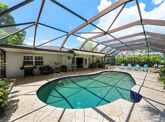WATERFRONT, GULF ACCESS, POOL HOME with endless rental income opportunity. Just minutes from Naples famous white sand beaches and the finest dining, shopping and entertainment offered at Mercato. This spacious 3 bedroom, 2 bath home offers a welcoming foyer, bright living room and dining room with gorgeous wood floors, large kitchen and an expansive family room that opens to the inviting pool, hot tub, sun deck and outdoor entertaining space. Follow the path through the fenced yard complete with fire-pit to your own private dock where you can fish, kayak or motorboat out to the Gulf of Mexico to catch a breathtaking Naples sunset. This property is great for investors due to the ZERO RENTAL RESTRICTIONS or year-round residents that desire to live their best "Naples life." LOW HOA OF $330 per lot Annually. Make this property an investors Dream