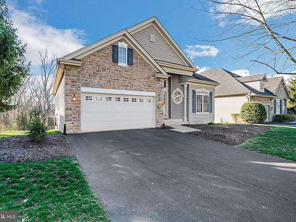 This desirable 55+ community Fox Run Preserve has a premium lot Rutgers model. It features an open living room/formal dining room area with tray ceiling, beautiful kitchen opening to a family room with gas fireplace and tray ceiling. French doors lead to private deck overlooking stunning woodlands and wildlife. Main floor includes two bedrooms, two full baths, laundry facilities while lower level boasts 10' ceilings, three rooms (two can be used as bedrooms/offices), one large entertainment area & powder room totaling approx. 1500 sq.ft finished living space. Major upgrades include tankless water heater (12/22), HVAC system (6/23), washer/dryer pair(7/22), fridge/freezer unit(4/23) & gas range(7/23). Unfinished basement provides ample storage/workshop space. Conveniently located near shopping, restaurants & New Hope attractions!