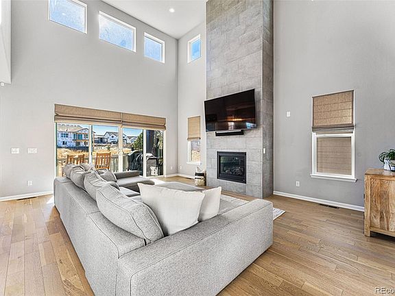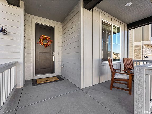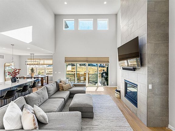 This home was removed from the market to allow the seller's family to be relocated out of state for a new job and not have them disturbed from showings. This home is move in ready as it is only 2 years old and has all the upgrades already completed. All new light fixtures, custom window coverings, quartz in all bathrooms and the kitchen, refrigerator is also included which is not standard with a new construction home. When you walk into the home, you will notice the beautifully upgraded engineered hardwood floors that draw you into the amazing great room with views of the mountains and overlooking the open space. The home site is surrounded with beauty, backing to open space and close to walking trails. The dramatic front-entry offers a two-story foyer. The enormous, gourmet kitchen boasts an incredible back splash, upgraded quartz countertops, KitchenAid appliances, ample cabinet space, and large walk-in pantry. A large center open sliding back door opens from your two-story great room to your covered deck, making it the perfect indoor/outdoor living space. It may sound surprising, but these homes did not come standard with deck stairs giving access to the backyard, and this upgrade has already been completed by the sellers. The home is complete with designer curated finishes, including quartz countertops, wide plank wood flooring, and shaker style cabinets. The basement is unfinished, making this a home you can truly grow in, with the rough-in plumbing which has already been installed for a future finished basement. The community is situated just minutes away from Downtown Castle Rock with shopping, dining, and entertainment. The home is in the Montaine Point community and the nearly completed community center will be a great place to enjoy your summers, work out and hang out with family and friends.