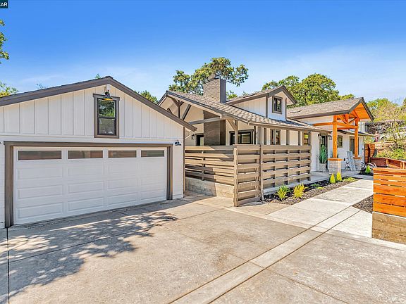 Discover ultimate luxury in this stunning single-story Craftsman. Newly constructed on a serene creek-side lot with views of the hills and Mount Diablo. The main house offers four bedrooms and 2 1/2 baths. Its gourmet kitchen boasts Viking stainless steel appliances, quartz countertops, a large island, and luxury vinyl floors. The great room, with a fireplace and scenic views, connects to an office and powder room. Vaulted ceilings and a stylish dining area enhance the space. The primary suite includes a fireplace, separate patio, and a bath with a soaking tub, shower, dual sinks, and lighted mirror with touch controls. Bathrooms are elegantly designed with marble, quartz, and stylish fixtures. The detached guest house/ADU features 2 bedrooms, 1 bath, an open kitchen with stainless steel appliances, a living room with an electric fireplace, and a private deck. Additional features include a two-car garage, private driveway, remote-controlled gate, multiple outdoor entertaining areas, solar panels, full exterior lighting, and a gas fire pit in the backyard patio. This estate blends luxury and functionality, offering an unparalleled living experience.