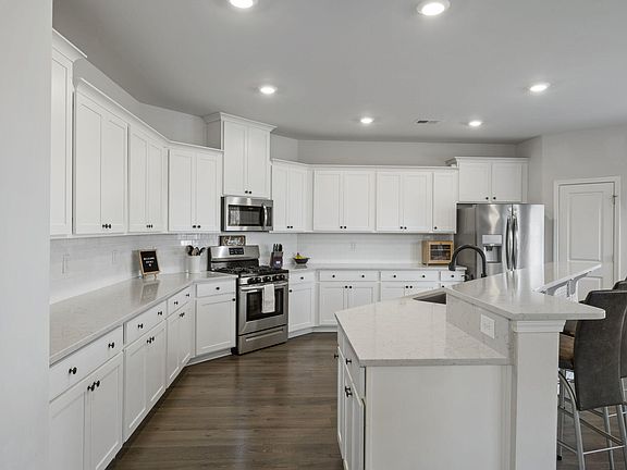 Welcome Home! The Georgetown floor plan offers expansive square footage used in all the right ways. As you enter through the double front porch, you are greeted with a beautiful open foyer. On the right, the office is adorned with french doors and straight ahead, a formal dining room with crown molding awaits. Take in the show stopping kitchen with beautiful updated cabinetry, one of the biggest kitchen islands that Cane Bay has to offer, granite countertops, subway tile back splash and stainless steel appliances. Relax in the open concept living room and enjoy the beautiful windows that showcase the large private backyard. Upstairs you will find an oversized owner's suite with beautiful ensuite bath boasting dual vanity sinks and large tile shower with separate garden tub.
