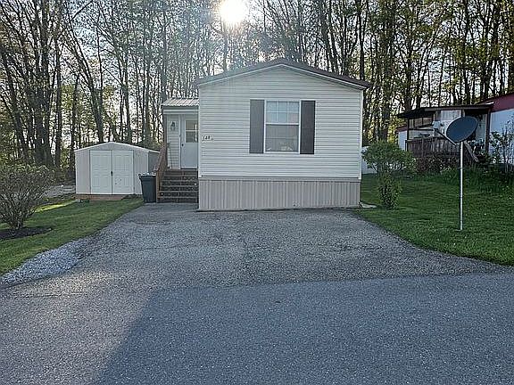 Very well maintained manufactured home, move in ready. Includes fridge, stove and dishwasher. Two sources of heat and central air. Sun porch. Storage shed included. Washer, dryer and furniture not included. Does not include land, lot managed by GSP Management.