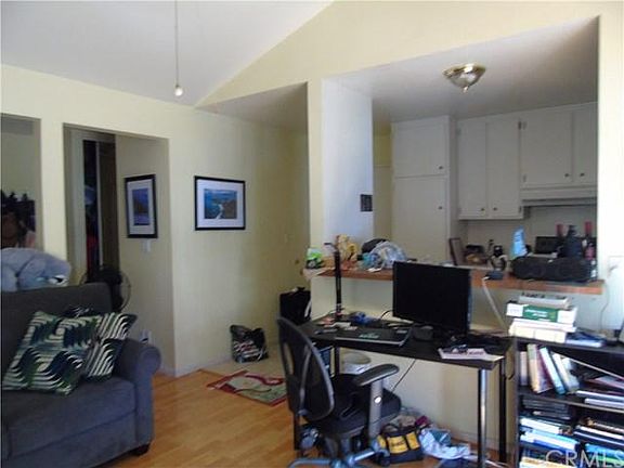 Studio unit, top level with sweeping views of Streams, ponds, waterfalls and lush vegetation. Excellent location for tract as there is no other building in front of the view. Sliding door to patio allows for maximum view. Pergo floors throughout. White kitchen cabinets with updated white counters. Mirrored wardrobe closet doors off bedroom alcove leading to bath. Dishwasher, Stove and Refrigerator. Vaulted ceilings with tasteful upgrades make it a very livable space, seems larger than it is. Breakfast bar is great for meals and conversation with the cook. Low maintenance, low cost housing near Irvine's community of Woodbury, just minutes from toll roads. Many students bike to IVC or Northwood High also Market Place theatre on Jamboree. Laundry area next to pool. Pictures are from last time leased...