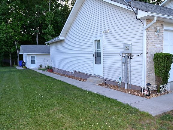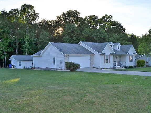 Beautiful home and grounds - 3BR/2BA home with split bedroom plan, living room with vaulted ceiling and fireplace. Neat and clean with 1,748 sq. ft., covered front and back porch, oversized garage with lots of storage, sidewalk to great building (18' x 22'), 3 rooms, one with heat and window A/C. 2nd workshop, 3rd for lawnmower storage. Makeup mirror in 2nd bath and curtains do not convey, all blinds and brackets stay.