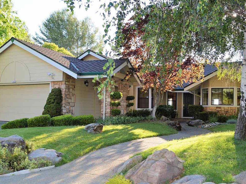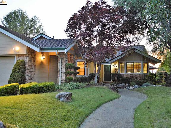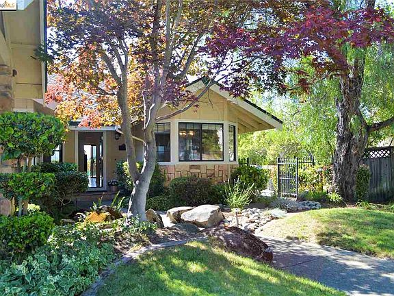 Welcome to this beautiful Deer Ridge home with sweeping sunset views surrounded by lush mature landscaping. The expansive lot allows for extended living space on the lovely redwood deck and gazebo. Spend time barbecuing in the shady side yard, or exploring the green belt path at the end of this quiet cul-de-sac. This level-in 3-bedroom, 2-bath home features both living and family rooms, as well as a formal dining room. Two fireplaces keep you cozy in the winter, and high vaulted ceilings provide a light and open feel. Perfectly located near the Marketplace, City Center Bishop Ranch, Whole Foods, Central Park and award-winning schools.