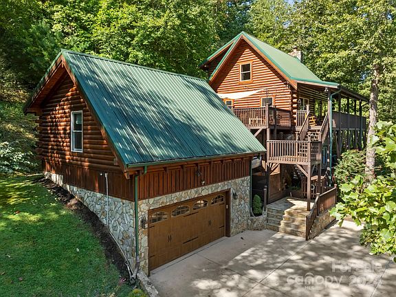 Beautiful log home in highly desirable Riverbend at Lake Lure. Meticulously maintained home with huge wrap around deck and mountain views. Oversized lot includes two parcels totaling 2.56 acres. Difficult to find two car garage with fully finished apartment (or studio) above, including full bath and kitchen. Main house has great flow and separation of space with bedrooms/full baths on each floor. Wood burning fireplace. Stainless appliances. Whole house dehumidifier. HVAC replaced 2018. Generac whole house generator. Short-term vacation rentals are allowed...garage apartment has solid rental history. Furniture available with small exclusion list. Would make an amazing primary residence, second home or turn-key vacation rental. Riverbend has two community lakes, assigned kayak slips, a beach, river access and picnic areas. Convenient to Asheville, Hendersonville and TIEC. Just minutes to Ingles Grocery, two public golf courses, Washburn Marina, Lake Lure town center and Chimney Rock.