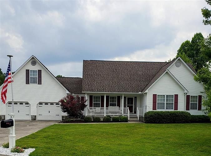 Open floor plan that features cathedral ceilings, hard wood floors and a 4th bedroom above garage that could be used as a den or office. The master bedroom has a walk in closet and a beautiful tiled shower. The kitchen has stainless steel appliances and a large utility room. A beautiful view from the deck with a jacuzzi hot tub to relax after a long day.