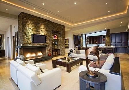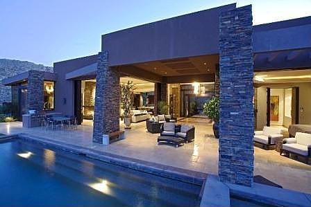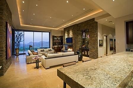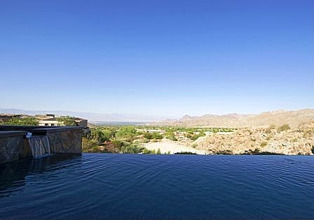 Elevated Contemporary View Estate designed by award winning architect, Kristi Hanson.  Located in one of the most prestigious locations high within Bighorn offering dramatic city lights, mountain, and down valley views.  Enjoy state-of-the-art conveniences and intricate designer details for today’s most discerning buyers.  Stunning Great room with wet bar includes lounge-style seating, sleek and artistic designer niches; stunning “fire and ice” fireplace with plasma television centered above.  Panoramic 12’ disappearing walls of glass open the entry, Great room and master retreat to a wraparound outdoor living room with raised fireplace and plasma television aside a natural stone infinity edged pool and spa spilling out to breathtaking views. Professional kitchen features rich wood cabinetry and elongated center island with modern bar seating serving the Great room for continuous entertaining. A formal dining room showcases built-in buffet and seating for six along an angled glass wall for an optimal view, and adjacent wine room and additional catering kitchen for lavish parties.  Double doors open to a sumptuous master retreat with panoramic glass walls opening spa-side for intimate evenings.  Indulge in the expansive master bath with morning bar, separate vanities, walk-in closets and water closets, two-sided open shower next to outdoor waterfall and Zen garden and raised mosaic glass spa tub amid fireplace and plasma television.  Three complete guest suites and an office complete the luxury including one romantic upstairs guest (2nd master) hideaway with infinity soaking tub and private hillside balcony.