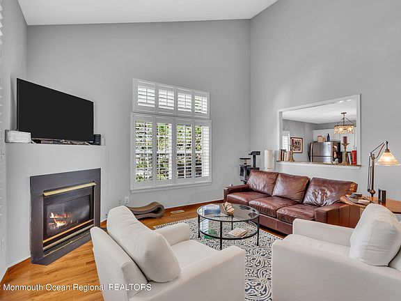 You are welcomed into a spacious living area with plenty of windows, cathedral ceilings and a gas fireplace. Adjoining the living area is a dining cove and kitchen with granite countertops and stainless appliances. The home offers a security system ,hardwood floors, an above ground deck and direct entrance garage. There is a private Master suite on top level and the 2nd level bedroom is ensuite. Plantation shutters in living areas. This Castlebury has a finished basement with additional bedroom, perfect for guests or a home office. Wonderful use of space.