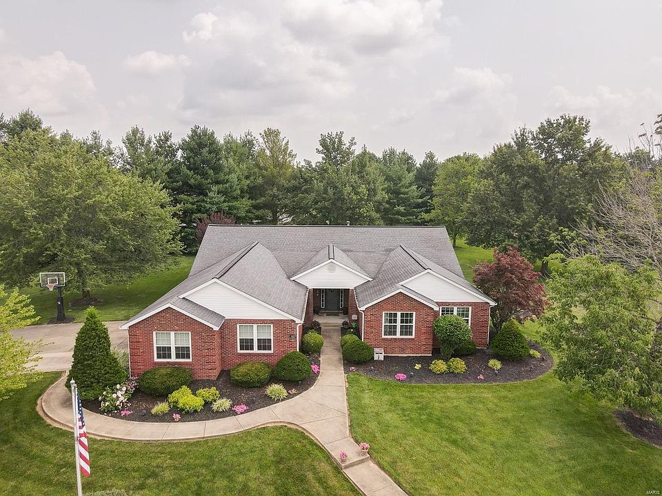 Beautiful Spacious Custom Built (Split Bedroom) Ranch Home on 1 Acre Lot has Much to offer- Open Floor Plan, Vaulted Ceilings, Extra 1/2 Bath, Large Designer Kitchen/Dining/Hearthroom w/Gas Fireplace, Island, New Induction Cook Top, Granite Counter Tops, Built-In Pantry & Desk Area is Perfect for Gathering, Generous Master Suite Retreat has Patio Access, Updated Bathroom w/ Large Custom Shower, Dual Vanities w/ Extra Cabinets & Walkin Closet. Finished Lower Level has Expansive Recroom, Game Area, Media Area, Gym Area, Craftroom/Office, Bathroom & Lots of Storage Space. Outstanding Outdoor Living Spaces w/ Large Private Corner Lot, Covered Patio & Huge Brick Paver Patio w/ Hot Tub & Firepit Areas. Finished Oversized 3+ Car Garage Deep Enough for Large Truck or SUV & Work Bench Area is a Bonus. Great Location in the Beautiful Steeplechase Neighborhood w/ Top Rated O'Fallon Schools just minutes to I-64, Scott AFB, Shopping, Parks & New Hospitals.