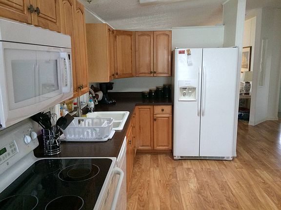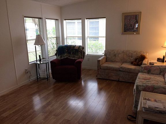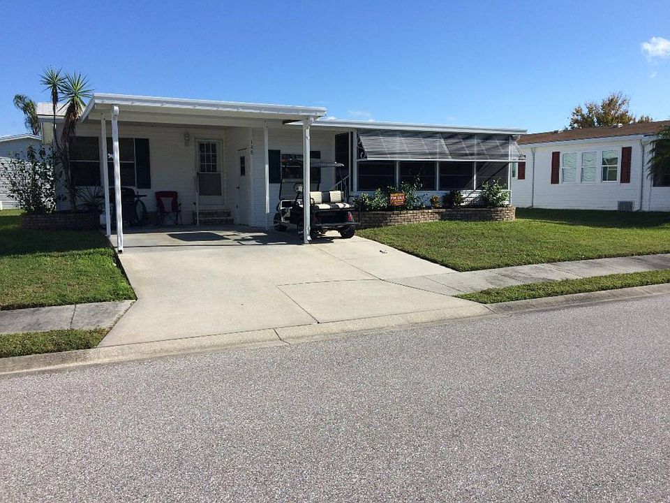 Lot rent $686 monthly. Don't wait to see this wonderful bargain for year round living or for part time snowbirds! Newly updated flooring in living room, kitchen and both bathrooms. New ceiling fan in kitchen, new toilets, faucets, disposal, and entire interior painted in the last two years. New roof installed January 2018! Plus, new windows installed on lanai in 2018. The laundry area in inside. The lot rent is only $686/ month and includes: lawn mowing, edging, trimming, cable tv, and all the amenities and activities offered at the fabulous clubhouse. Amenities include fitness room, library, billiards, party room, lockers/restrooms, a gorgeous olympic sized swimming pool and a hot tub.