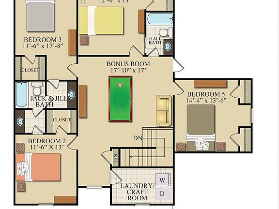 The Camden Floor Plan by Konter Quality Homes. Five bedrooms 3.5 bathrooms and over 3,500 sq. ft. of living space. Luxurious master suite on main floor with walk-in closet and sitting area. Open floor plan with brick fireplace in the great room. Formal living room and formal dining room. Foyer entrance. Kitchen with breakfast area and expansive island. Stainless steel appliances. Granite counter tops in kitchen and master bath. Large bonus room upstairs. Jack and Jill bath upstairs. Side entry two car garage. The Camden includes spray foam insulation and is Earth Cents rated helping you to save money on your utility bills immediately!!