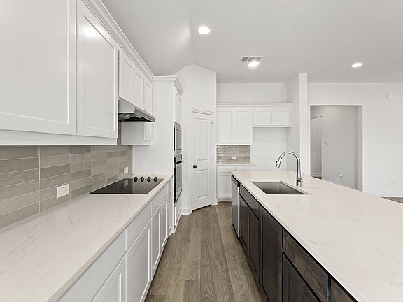 Engineered wood flooringCovered patioUpgraded tile selectionsKitchen countertopsGourmet open kitchenCustom cabinetsUpgraded backsplash