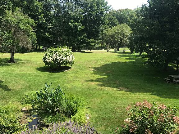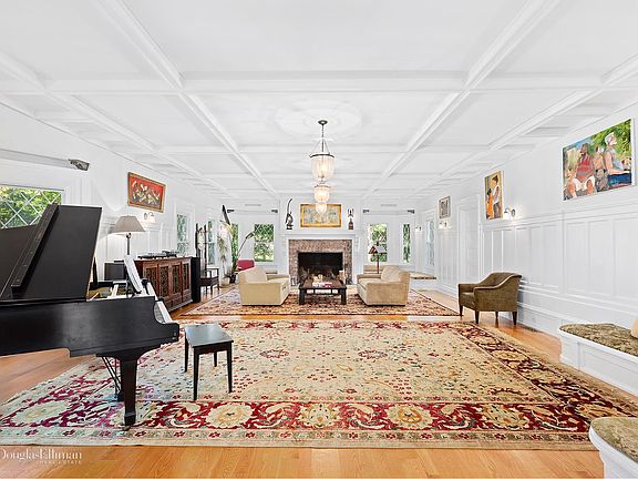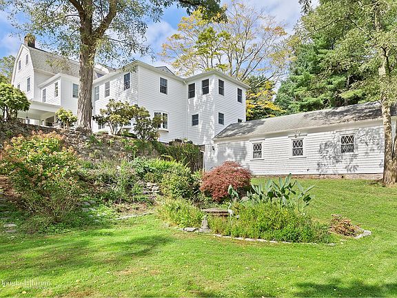 Offering casual elegance and grace of a bygone era. A place to influence an artist, musician, writer. 6 Bedrooms, 5.5 baths. Featuring a true great room (60 x 20 ft) with wood burning fireplaces at both ends, diamond-pained windows, beamed ceiling, decorative window detailing and wainscoting. Original wet bar off great room ideal for entertaining. Library with floor to ceiling built in book shelves for the quiet times. Formal Dining room with floor to ceiling windows and original wainscotting. Eat-In kitchen with stainless steel appliances, granite counter top. Master suite with fireplace, his and her closets and master bath with extra large windows for full sunlight. Reasonable taxes, Westchester border & close to train and hwy for easy NYC access. Pool site, Koi pond and mature landscaping all surrounded by 100 acre estate. Incredible value.
