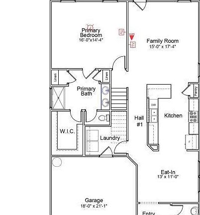 This two-story home boasts 3 bedrooms and 2.5 bathrooms. A two-car garage leads directly into the laundry room and staircase. The kitchen, which features granite countertops, is centrally located between an eating area and the family room. The primary bedroom is located on the first floor, just off the family room, and features walk-in linen and clothes closets. The attached primary bathroom has a 5-foot walk-in shower, double vanities and quartz countertops. Each upstairs bedroom includes a walk-in closet and shares a second full bathroom. Off of the living area, you will find a covered patio which overlooks a sodded and landscaped yard complete with irrigation. *Exterior photo is a rendering and not an actual photo of subject property. estimated completion March/April 2024
