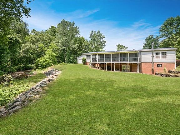 Postured on 17.02 acres of park like privacy that crosses the banks of McKee Run, opportunities to recreate and enjoy nature abound here. A striking recent metal roof tops this upgraded manufactured home and its semi-attached oversized garage in low maintenance longevity. 2x6 walls and upgraded windows make for cozy living with improved energy efficiency. Generous sunlit interior with fresh neutral walls and flooring. Behold the expansive vaulted great room space that straddles a multi-sided glass enclosed gas fireplace, consisting of a cheerful living room and elevated dining area. In the summer, this gathering space takes second place to the screen enclosed covered deck that spans the length of the home and overlooks its water feature. Skylit center island oak kitchen. Split bedroom design. The owner suite is ready to pamper you with a jetted bath, step-in shower and two walk-in closets. Full basement with double walk-out doors allow for ground level access to the backyard.