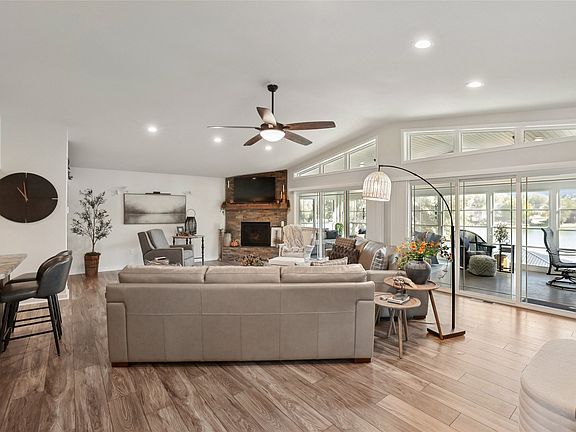 Stunning lake viewsBarbecue areaAmphitheater-style firepitOpen floor planCustom blindsNew landscapingNew patio area