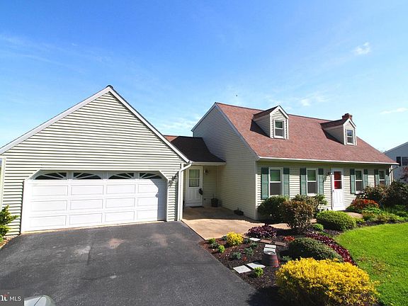 Well maintained 4 Bedroom 2 Full Bathroom Cape Cod with scenic farmland views! 2 car Garage opens to a spacious Mud Room w/ washer & dryer and sanitary tub. Move in to the Kitchen with electric stove, hood, refrigerator, double sink & microwave. Dining Room is attached with sliders to the back deck which overlooks the valley. Living Room at the front of the house with laminate floors and main entrance. Two Bedrooms and a Full bath round out the main level. Upstairs are 2 large Bedrooms and another Full Bathroom. The unfinished Basement has plenty of room to finish and storage with a propane stove (as is), water softener and second rear garage / shed with roll up door. The rear fenced yard is a plus and backs to farmland. HVAC & Heat Pump replaced in 2016, water heater in 2019 and new windows in 2019. There is also the original electric baseboard heat if extra warmth is wanted.