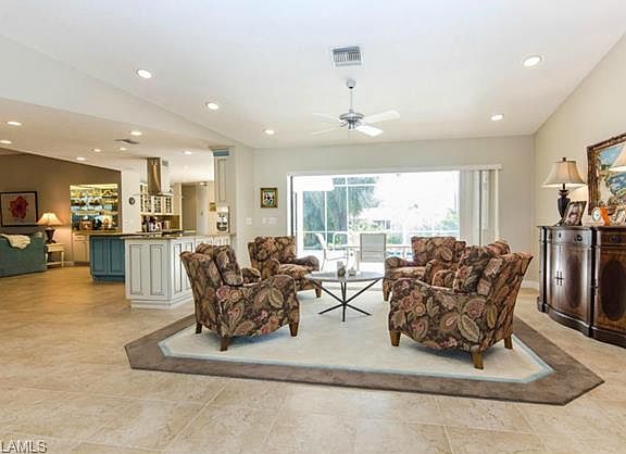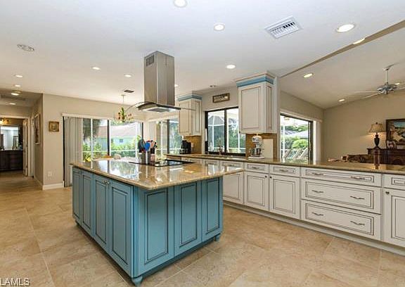H.8708 - Immaculate Rehab!! Light and Bright! Soaring high ceilings, sweeping long cross views inside the entire interior with dividing walls removed making a modern functional home with top of the line extras throughout. Blues and tans catch your eyes as you walk in the front door, Swarovski crystal light fixtures, multi level glazing and customized shaded highlights make this remodel pop! Completely wide open; the kitchen features high end stone counters, induction range, glass hood, large island, soft close cabinets, all stainless appliances. The Master Bath is completely customized - "fit for the Ritz!" What a sanctuary!! This will sell the house! Huge soaker tub, walk in closet, top of the line fixtures and lights. Large neutral tile everywhere & laundry room! Fruit Trees, Electric & Solar heated diamond finished pool, and large clean lanai highlight the exterior. Must see to appreciate remodel!!