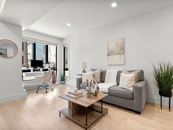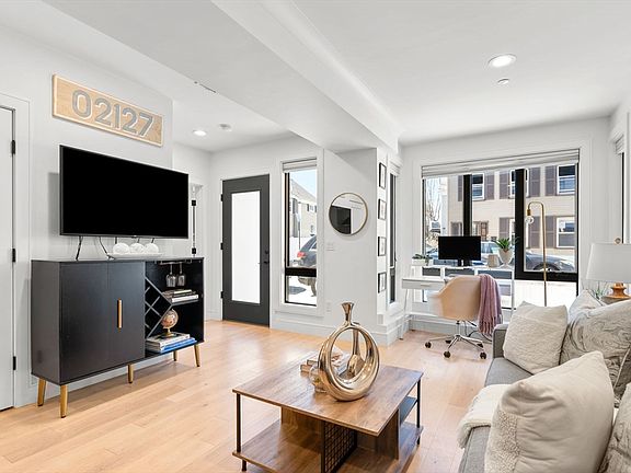 Experience all that bustling South Boston has to offer in this pristine luxury one bedroom condo with easy access to the Andrew and Broadway T stops and Carson Beach. This 2018 new construction exudes modern appeal, from the open concept floor plan, hardwood floors and recessed lights throughout, to the stunning kitchen, featuring a gas stove with hood vent, stainless steel appliances, stylish tiled backsplash and a massive peninsula with quartz counters. Natural light floods in through the abundant windows, making working from home extra appealing from either of the two window-facing spaces perfect for your desk. Off of the welcoming entryway with a bench seat and storage for shoes and jackets, the large bedroom can comfortably fit a king bed, and its double closet with custom built-in shelving will wow you. In addition to the gorgeous bathroom with mounted vanity and oversized shower, the unit is complete with the conveniences of in-unit laundry, central air and deeded storage unit.
